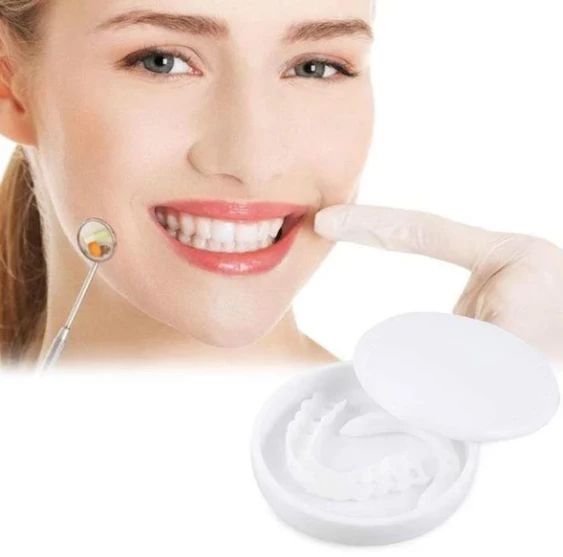 MAGIC TEETH BRACE เป็นวีเนียร์ที่ถอดออกได้แบบไม่รุกรานซึ่งจะทำให้คุณมีรอยยิ้มที่สมบูรณ์แบบฟันขาวโดยไม่ต้องเดินทางไปหาหมอฟัน มันถูกออกแบบมาให้มีลักษณะเหมือนชุดฟันธรรมชาติ มันเป็นวัสดุที่มีฟันอย่างสมบูรณ์ดังนั้นกาวจึงไม่จำเป็นต้องใช้ มันครอบคลุมถึงฟันที่หายไป, คดเคี้ยว, บิ่นหรือเปื้อนให้รอยยิ้มที่สดใสและสมบูรณ์แบบ