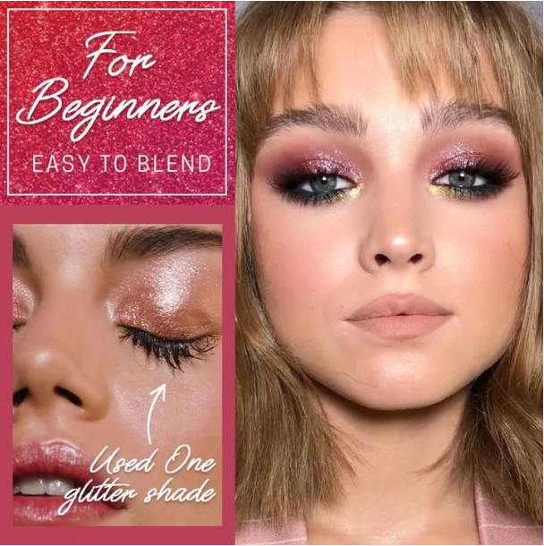 This PrettyS⢠Sparkly Glitter Eyeshadow Palette (15 Shades) gives any boring, blend makeup a lil BLING with very minimal effort!
